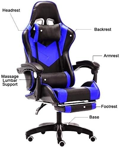 AWF AL WADI FURNITURE® Gaming Computer Chair,Armchair,PVC Leather Office Chair With Footrest,Ergonomic Support,Racing Style,Headrest,Lumbar Soft Support,Blue Black